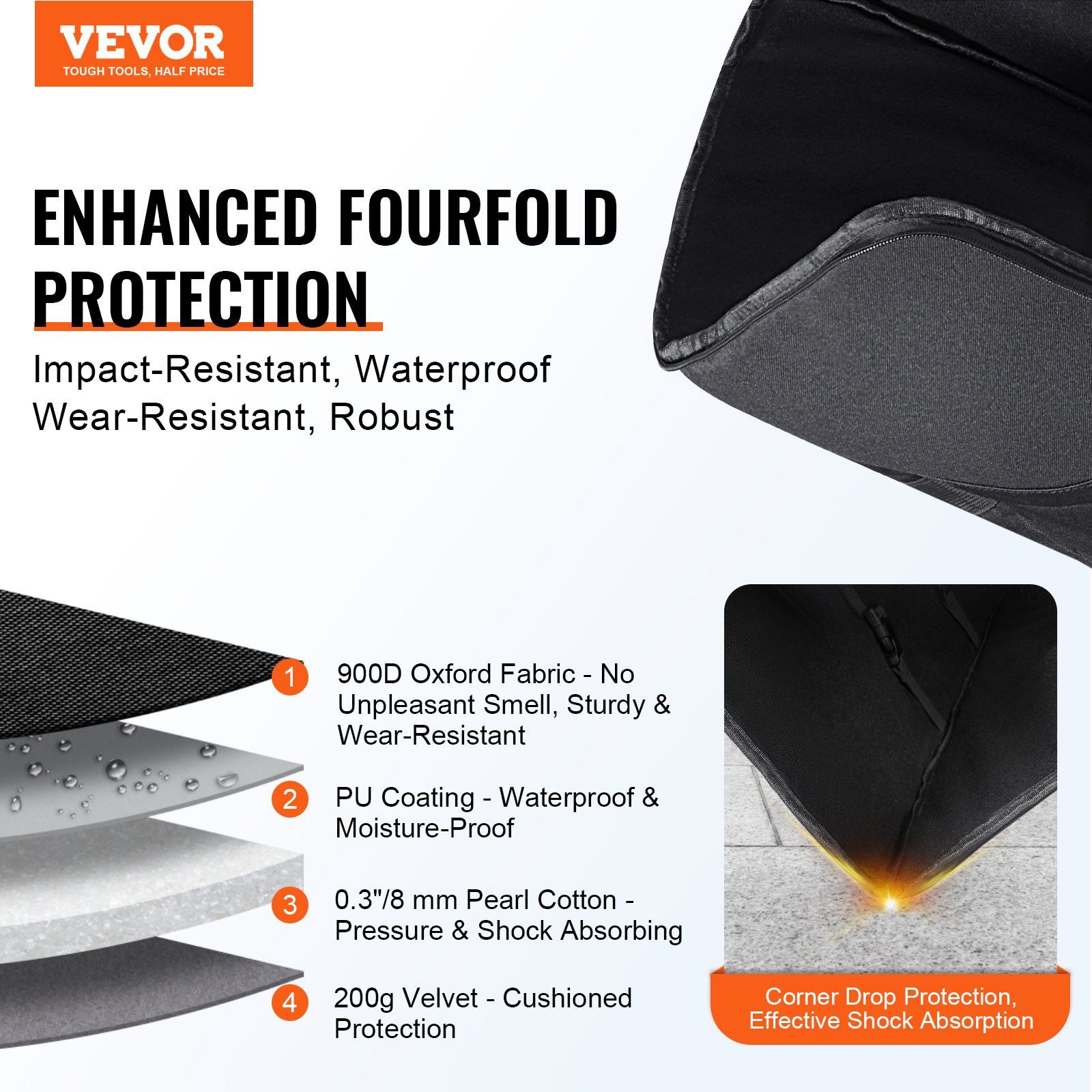 1.Quadruple Security Layers: The telescope case is made of 4 high-quality materials, including strong and wear-resistant 900D Oxford fabric, waterproof and moisture-resistant PU coating, shock-absorbing pearl cotton lining, and soft velvet inner lining, providing excellent protection for the telescope in all aspects.